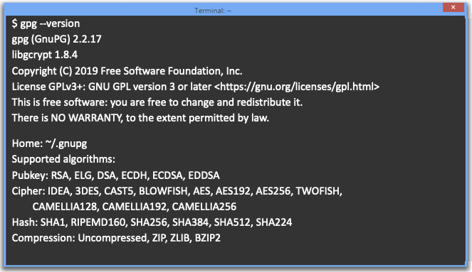 GPG는 공식 사이트(gnupg.org/download/index.html) 또는 OS의 package manager(eg: yum, apt, brew 등)를 통해 쉽게 설치 가능하다. Windows는 공식 사이트에서 Gpg4win을 다운로드하여 설치하면 된다.
