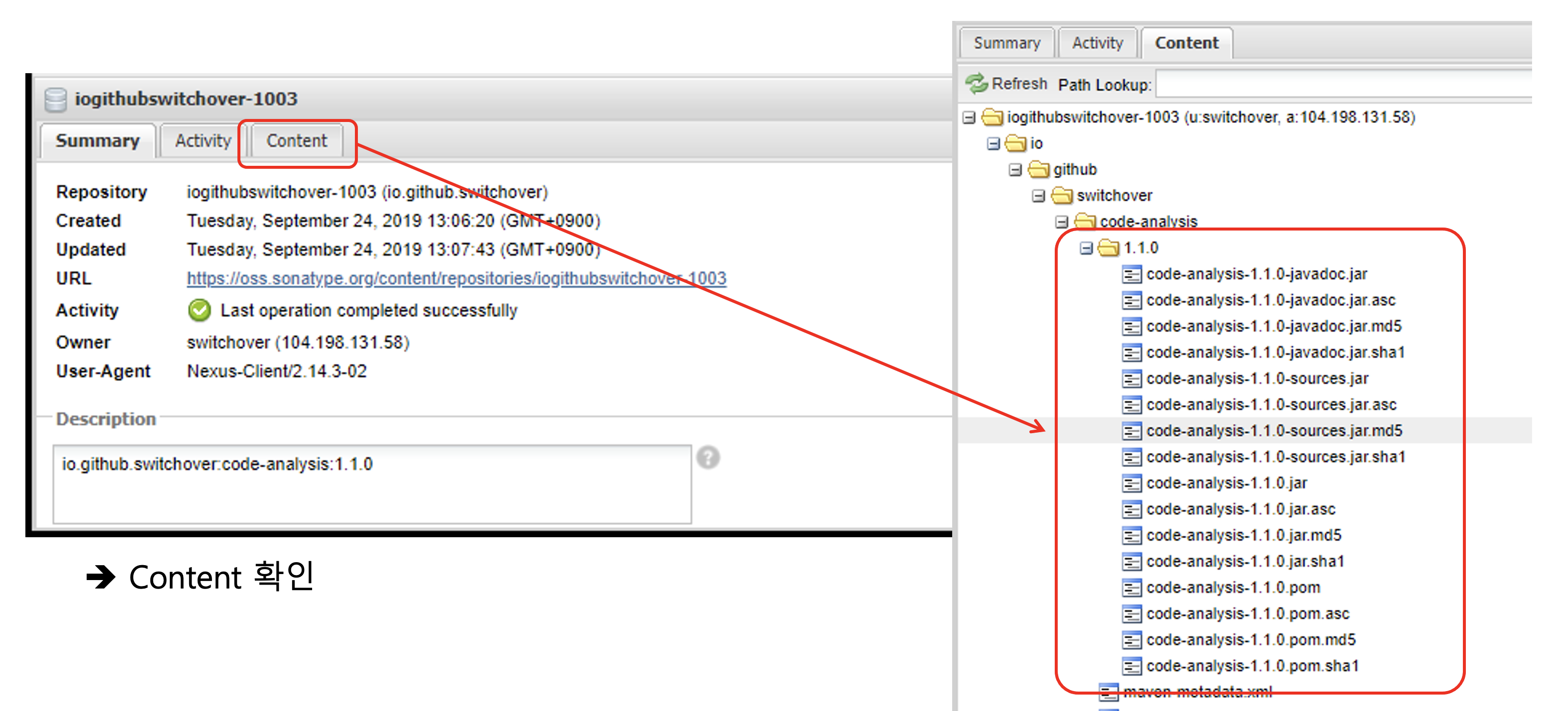 7.2 Artifact 확인 (w/ autoReleaseAfterClose)