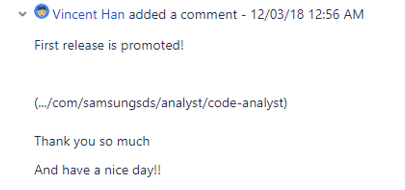 다만, 처음부터 autoRelaseAfterClose가 설정되었다면 별도 comment 등록 없이도 다음과 같은 안내 comment가 몇 분 후에 등록된다.